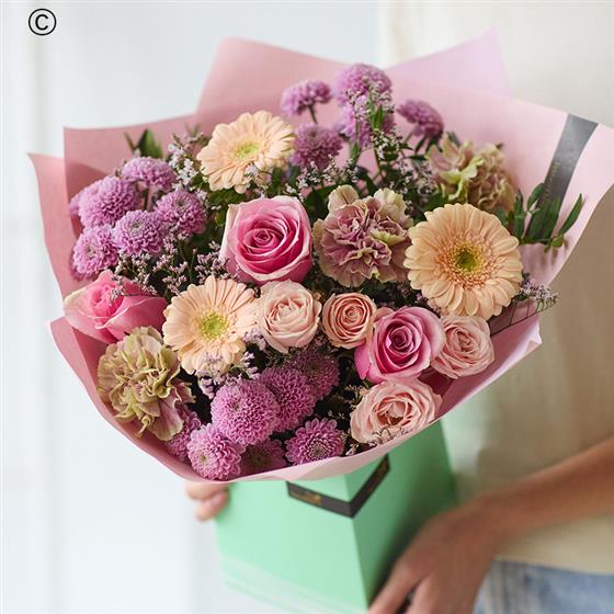 Hand-tied flowers expertly arranged and perfectly presented in a pretty gift box. Each and every design is one-of-a-kind, created by an artisan florist using the freshest stems available on the day so, whilst your gift will look different to the one pictured, it’ll still be just as lovely.